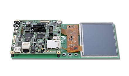 ボードには、マルチタッチ対応のタッチパネル付きLCDの他、SD/USB/LANなど