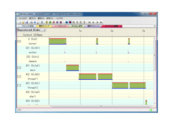 コンテキスト単位に実行状況を時系列で表示することにより、対象となっているコンテキストと、他コンテキストとの関連状況を見ることができます。
